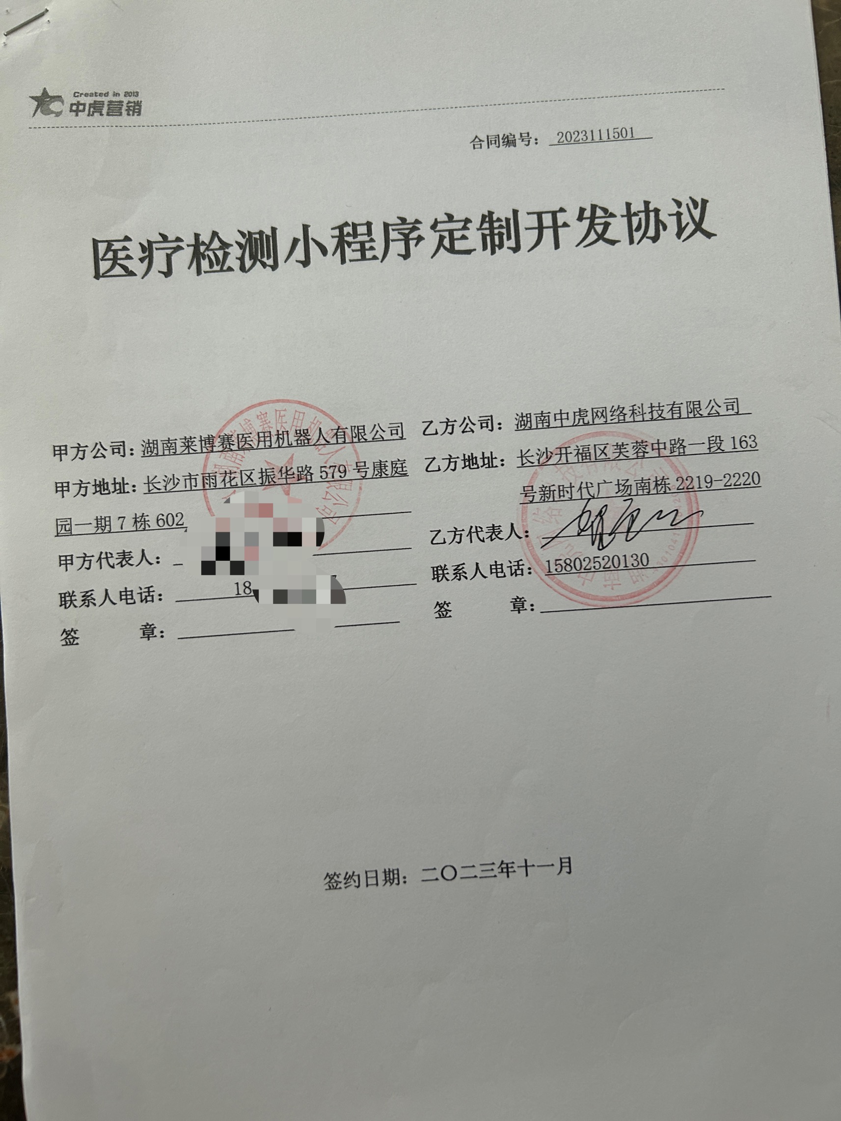 中虎營銷簽約湖南萊博賽醫(yī)用機器人有限公司小程序應用平臺開發(fā)!