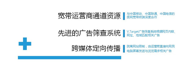 精準(zhǔn)營(yíng)銷簡(jiǎn)述:由我們專業(yè)人員跟據(jù)客戶的需求設(shè)計(jì)好廣告圖片或者視頻,通過(guò)三大運(yùn)營(yíng)商(聯(lián)通,移動(dòng),電信)寬帶傳送到電腦終端!