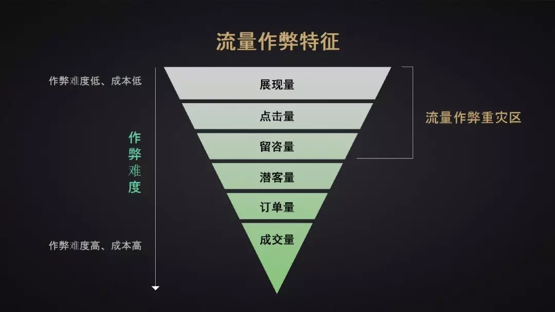 2、流量陷阱:無效與作弊。流量作弊是一個全球性問題,花錢投廣告買流量,閱讀量容易造假,點擊量容易造假,用戶留的電話號碼也容易造假。